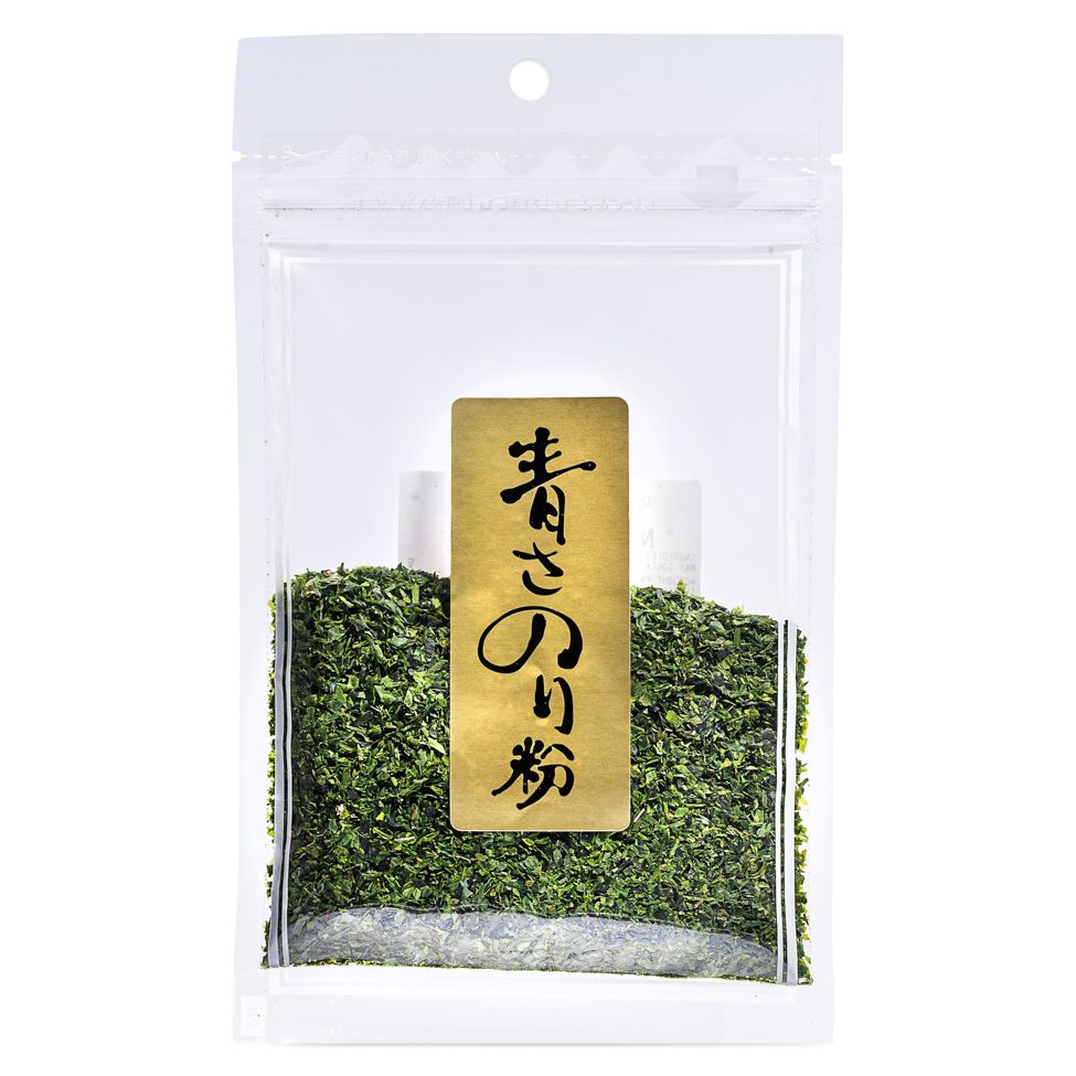 Dried seaweed flakes usually used for sprinkling on Japanese Okonomiyaki Pancake, but can used for a variety of purposes. Sprinkle on rice, takoyaki and pasta!