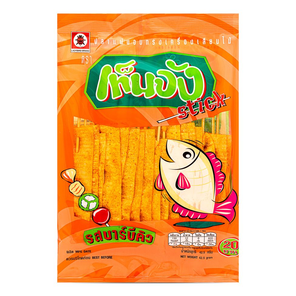 Skewers of thin BBQ fish fillets. Perfect for a quick snack with a nice cold drink.